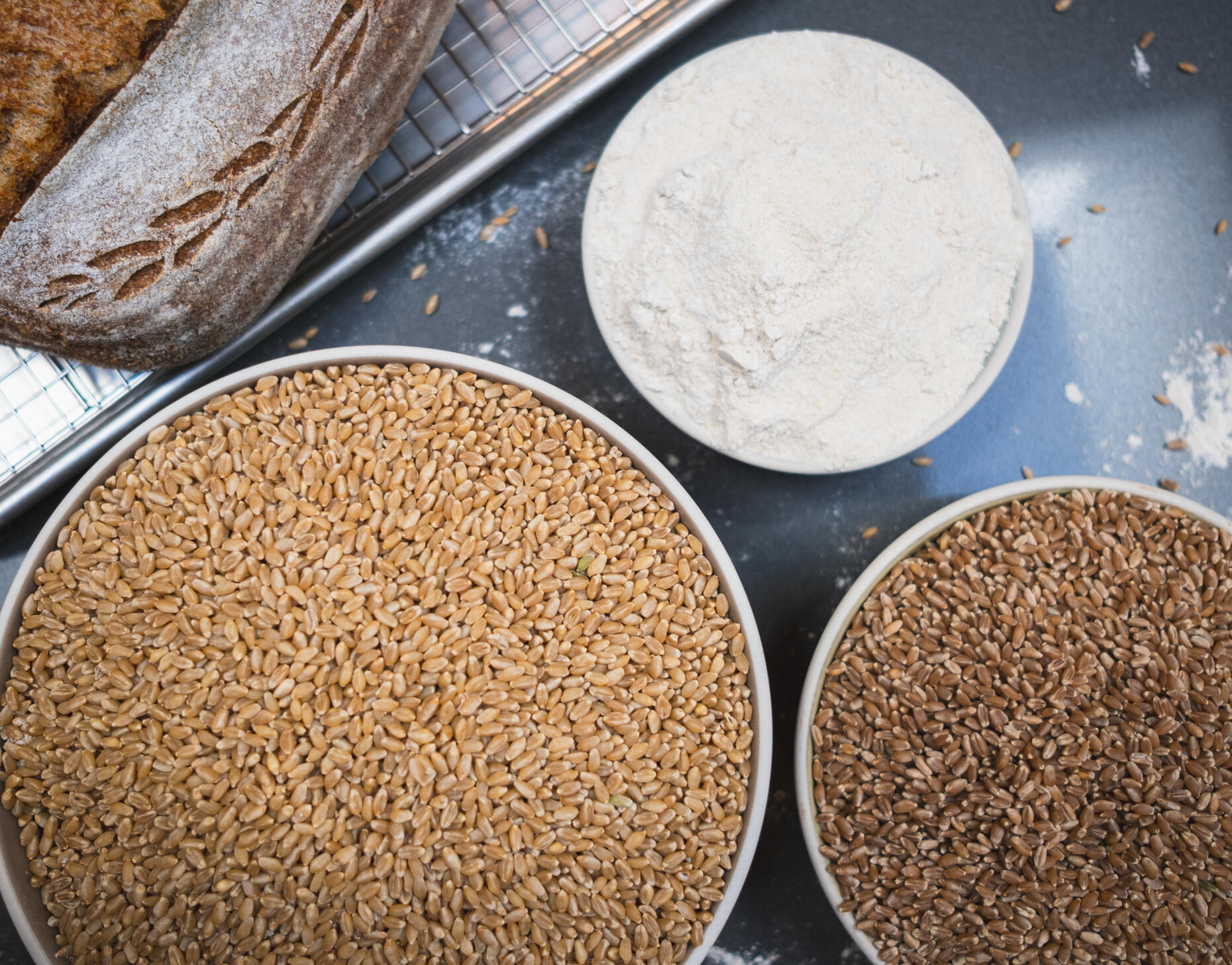Our blend of freshly milled flour, ground from organic wheat berries, provides deep flavors and nutrient density. In commercial flour production, the bran and germ are sifted out, significantly reducing the fiber, vitamins, minerals and phytonutrient content. We mill our flour on-demand for each batch to minimize the oxidation and degradation of vitamins and antioxidants.